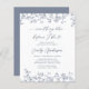 Convide convidados para uma celebração romântica com um Chá de panela francês da Chinoiserie "Algo Azul"! Apresentando delicados padrões inspirados na chinoiserie em tons azuis suaves, este design combina elegância do eterno com encanto caprísico. Os ornamentados florais e os detalhes da vintagem criam uma estética refinada, perfeita para honrar a futura noiva. Seja hospedando uma festa de chá ou uma reunião de jardim, este convite define o tom para um evento gracioso e memorável. Celebre o amor e a beleza com este design requintado!