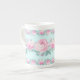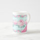 Caneca personalizada. estilo chique, presente floral para ela. Rosas cor-de-rosa sobre fundo azul aqua, design romântico. Adicione seu nome ou qualquer texto.