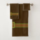 Adicione uma pequena haste ao seu estilo com este padrão simples, mas clássico, de listras com uma base marrom de chocolate e uma faixa brilhante de ênfase de verde limão. Personalize o monograma da mão e da toalha de banho para uma decoração única para o seu banheiro. Esses itens podem ser comprados como um conjunto correspondente ou como peças individuais.