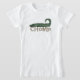 Um design do jacaré com texto que lê "CHOMP" em t-shirt do jacaré, em ímãs do jacaré, em etiquetas, em cartões, em canecas, e em mais.