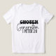 This uplifting tee features the phrase "Chosen Generation" from 1 Peter 2:9. The contrasting bubble and script fonts create a dynamic, modern feel. It's a powerful statement of divine identity and belonging for the Christian wearer.
