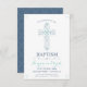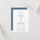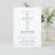 Este convite moderno de Christening ou Baptismo apresenta uma elegante cruz floral azul e verde. Ideal para a celebração religiosa de um bebê, pode ser personalizado com o nome do seu filho e os detalhes do evento. A cor de fundo também pode ser alterada para seu gosto.