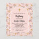 Um quadro de arco sobre um padrão de grama pampas e flores cor-de-rosa e uma cruz ouro. Personalize e adicione um nome e detalhes. 1 folha = 1 convite impresso de borda a borda.