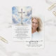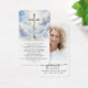 This memorial prayer card features a Christian cross with a radiant sky and cloud background, symbolizing faith, hope and eternal peace. The opposite side highlights a personalized photo alongside the phrase “Forever in Our Hearts,” creating a heartfelt tribute for funeral services, memorial gatherings or a celebration of life. Included is an editable "The Lord’s Prayer," offering familiar words of comfort and reflection for family and friends during moments of remembrance (or change to another prayer, bible verse, poem or custom remembrance message). Its small and portable size (3.5x2") makes this keepsake card convenient to carry as a reminder of their life and spirit. Personalization makes these cards unique.