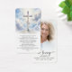 This memorial prayer card features a Christian cross with a radiant sky and cloud background, symbolizing faith, hope and eternal peace. The opposite side highlights a personalized photo alongside the phrase “In Loving Memory,” creating a heartfelt tribute for funeral services, memorial gatherings or a celebration of life. Included is an editable "The Lord’s Prayer," offering familiar words of comfort and reflection for family and friends during moments of remembrance (or change to another prayer, bible verse, poem or custom remembrance message). Its small and portable size (3.5x2") makes this keepsake card convenient to carry as a reminder of their life and spirit. Personalization makes these cards unique.