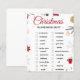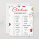 Festive Christmas scavenger hunt checklist artwork with a clean white background and charming holiday illustrations. Designed with elegant red cursive typography, surrounded by cozy winter elements like evergreen branches, snowflakes, houses, trees, a snowman, and warm holiday details. The balanced layout creates a joyful seasonal atmosphere perfect for family-friendly celebrations. All text and images are fully editable, allowing easy changes to match any style or preference.