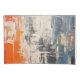 This abstract digital artwork, titled "Chromatic Crossroads," is a vibrant and dynamic piece characterized by thick, textured applications of paint that suggest the use of a palette knife or broad brushstrokes. The composition is vertically oriented and divided into distinct, contrasting color zones. The left side is dominated by fiery orange and red, transitioning into a central area of white, cream, and muted gray/black with strong vertical and horizontal scrapes and lines. The right side features deep, cool blues and blacks. The colors clash and converge near the center, creating an intense visual tension and a sense of movement or convergence, suggesting the "crossroads" in the title. The overall style is expressive and modern.
