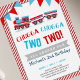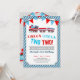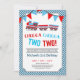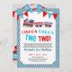 Celebre seu pequeno aniversário de um segundo com nosso chugga chugga dois Convites de festas de trem. Este belo convite de aniversário de trem apresenta um trem em um design vermelho e azul escuro. O tema de cor é totalmente editável! clique em "editar fundo" para alterar o tema de cor. Este convite para treinamentos escolares é perfeito para a segunda festa de aniversário do seu filho.
