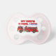 Um carro de bombeiros vermelho dos desenhos animados e a frase "meu pai são um herói real"