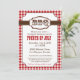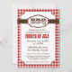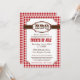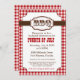 Um convite de festas de churrasco. Picnic, barbeque, churrasco. Vermelho e marrom. Verificado e padrão de gingham, a região oeste do país. Bridal ou chá de casamento, churrasco de férias, celebração de aniversário, etc.