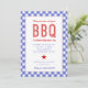 Convite vermelho branco e azul com padrão de mesa piquenique de gingham e borda vermelha pequena. Informações da festa em azul. Acentos vermelhos de "CHURRASCO" e "estrela" podem ser movidos quando você clica em "personalizá-lo". Convide amigos e famílias para o seu próximo CHURRASCO de quintal, seja só por diversão ou uma ocasião especial como a quarta de julho.