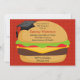 Convide a família e os amigos para uma Festa de formatura de CHURRASCO com este belo convite com um hambúrguer vestindo um conselho mortor. Personalize com seus detalhes de Festa de formatura.