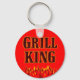 Churrasco engraçado do Grill King dizendo em uma fonte flamejante ocidental para cozinheiros e cozinheiros. Com arte gráfica de chamas vermelhas e laranja no fundo do design. Outro original da MomsRetro.