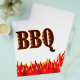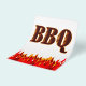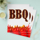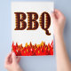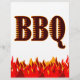 Um modelo de panfleto personalizado com a palavra CHURRASCO em letras flamejantes ocidentais com arte gráfica de chamas vermelhas e laranja na parte inferior da design.