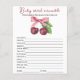 Convide seus convidados com estas cerejas aquáticas. Cereja com folhas e fita vermelha. Ela é a cereja em cima. Respostas: CRAVINGS, CRYING, PACIFIER, FRASCO, LUZ NOTURNA, LULLABY, STROLLER, EPIDURAL, BURP, ALTA CADEIRA, SACO DE DIAPER, SWADDLE