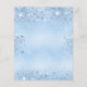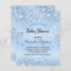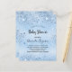 Para uma chuva de bebê, celebrando um menino. Um fundo metálico falso azul claro. Decorado com pó de brilho falso. Modelos para o nome da futura mamãe e detalhes da festa. O nome e o texto: Chuva de Bebê estão escritos com um estilo de letra manuscrita