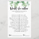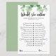 Jogo "Ela Preferiria" para Chuva de Noiva com Eucalipto, Jogo para Chuva de Noiva com Verde de Eucalipto, Atividade Imprimível Minimalista para Chuva de Noiva