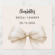 Um fundo bege creme. Decorado com um laço grande. Personalize e adicione o nome da noiva e uma data. Tipo de letra manuscrito preto.