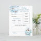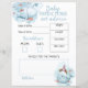 Folhas de papel "previsões e conselhos" para chá de bebê com tema baleia azul e branco. Para personalizar ou alterar o texto, as cores e as fontes, clique no botão para editar o design. Inclui data de nascimento, hora, peso, comprimento, cor dos olhos, cor do cabelo, semelhança e espaço para adicionar uma mensagem de conselho para os novos pais.