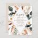 Chic e Moderno com Orçamento Baixo Grama de Pampas e Eucalipto Floral Flores Boho Boemia Terra Cotta Marrom Botânico Verde Água-Forte Quadro Convites de Chás de Bebê Outono, Inverno, Primavera ou Verão - inclui tipografia de roteiro bonita e elegante para a festa ou celebração especial da futura Mãe.