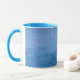 Comece seu dia com um copo de relaxamento de sua bebida quente favorita com esta caneca bonita em matiz macias do azul e das sugestões no roxo.