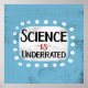 "A ciência é subestimada" é um design de texto divertido e desajeitado, que apresenta uma forma de sotaque branca rodeada de bolinhas brancas giras.