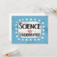 "A ciência é subestimada" é um design de texto divertido e desajeitado, que apresenta uma forma de sotaque branca rodeada de bolinhas brancas giras.