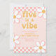 Cinco é uma Vibe Groovy Girl Retro inspirou um convite de 5 com fontes estilo 70 e margaridas e padrão de verificador.