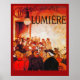 Repro pub domain poster anunciando 1896 os filmes do Lumiere Bothers no Grand Cafe.