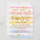 A cintilação, cintilação, pouca estrela, DOIS anos velha é o que você é! A cintilação da cintilação pouco convite do segundo aniversário da estrela com brilho das listras e do ouro da aguarela do arco-íris stars.