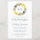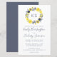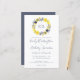 Esta design de casamento apresenta as iniciais da noiva e do monograma da noiva em cinzas moldadas por uma coroa aquosa de flores amarelas e cinzas. Personalize o texto com os nomes dos casais em uma escrita elegante e os detalhes do casamento em sans serif e itálico. O reverso é uma sombra sólida de cinzas.