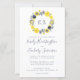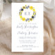 Esta design de casamento apresenta as iniciais da noiva e do monograma da noiva em cinzas moldadas por uma coroa aquosa de flores amarelas e cinzas. Personalize o texto com os nomes dos casais em uma escrita elegante e os detalhes do casamento em sans serif e itálico. O reverso é uma sombra sólida de cinzas.