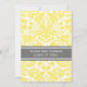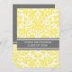 Cartão personalizado de convite à Festa de formatura em elegante e sofisticado amarelo-limão brilhante, cinza e cor damasco floral clássico branco. Personalize este cartão de anúncio de formando adicionando o ano da graduação e os detalhes da festa de formatura.