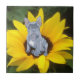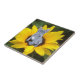 Este azulejo decorativo de cerâmica bonito e colorido mostra meu desenho de uma cinza azul giro cachorrinho francês Bulldog sentado no centro de um girassol gigante. Um encantador complemento para qualquer quarto.