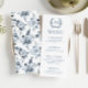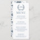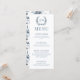 Melhore o charme da sua recepção de casamento com esses sofisticados e na moda azuis e cartões florais de cardápio de cinza. Decorado com delicado padrão floral e mostrando uma coroa floral eterno embelezada com a noiva e o monograma do noivo.
