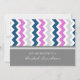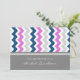 Convites de noiva em elegante azul marinho escuro, rosa quente fuchsia, cinza e padrão de listras retrógradas e casuais chevron zigzags, chic e feminino, personalizáveis com seus detalhes de chá. Também disponível em cartões de agradecimento e convites para a festa noiva.