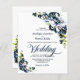 Convide seus amigos e entes queridos para o seu casamento com este convite de casamento floral de cinzas azuis.