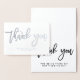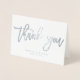 Folha de prata real e casamento preto Obrigado Cartões (horizontais) com texto preto personalizado, impressos em fundo de cinza, com envelope de cinza