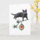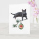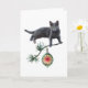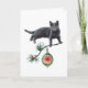 Um gatinho de cinza tem uma tosse verde com um ornamento de vidro vintage pendurado neste cartão de Natal distinto.