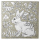 Uma cinza média combina-se com uma renderização de linha de cinza mais escura para um azulejo que lembra o decor de safra, os azulejos antigos e a cerâmica antiquada da chinoiserie oriental. Meu design original apresenta meu clássico coelho coelho e motif de pássaros, com flores estilizadas, folhas, cipós e bagas. Disponível em dois tamanhos. Este azulejo seria perfeito num banheiro ou cozinha, como sotaque, trivit ou como decoração de parede. Os tons de cinza populares se encaixam na decoração mais moderna. Excelente para quem ama animais, natureza e coelhos. Trabalho de arte e design únicos de Tuzi Williams.