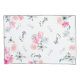 Personalize um travesseiro de bebê com minhas flores originais em cinza e pinks. Nome repetido por todo o lado, um item exclusivo do quarto de uma rapariga. Moderno e chique. Rosas, peônias, folhas, pétalas, folhagem.