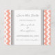 Salve os cartões postais de anúncio em cinzas elegantes e contemporâneas de carvão, cor-de-pêssego, e padrão branco moderno de chevron zigzag, na moda e totalmente personalizável com seus detalhes de casamento. Também disponível em muitos outros produtos para a festa de casamento.