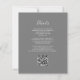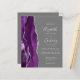 A borda esquerda deste elegante convite de casamento moderno apresenta uma cor d'água roxa, borda agitada com falso brilho prateado. O texto personalizável combina letra de manuscrito, chapa e fontes itálicas em cinzas prateadas em um fundo de cinza média. Adicione mais detalhes no verso, juntamente com um código QR para ajudar seus convidados a visitar seu site de casamento.