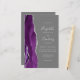 A borda esquerda deste elegante convite de casamento moderno apresenta uma cor d'água roxa, borda agitada com falso brilho prateado. O texto personalizável combina letra de manuscrito, chapa e fontes itálicas em cinzas prateadas em um fundo de cinza média. Adicione mais detalhes no verso, juntamente com um código QR para ajudar seus convidados a visitar seu site de casamento.