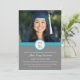 cartão com fotos personalizado de convite festa de formatura em azul brilhante, cinza de carvão e design moderno branco. Personalize este cartão com fotos de formando adicionando o ano de sua graduação, suas próprias fotos e seus detalhes de festa de formatura.