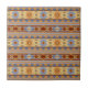 Estilo sudoeste Padrão geométrico nativo americano com tons de terra quente de amarelo arenoso, cinza azul ardente e tonalidades coloridas enferrujadas de castanho, laranja e vermelho.