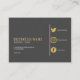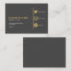 Este cartão de visita moderno apresenta um fundo preto limpo com sotaques elegantes de ouro e cinza para uma aparência nova e profissional. O lado esquerdo destaca seu negócio ou nome em letras maiúsculas em negrito, com detalhes da empresa em cinzas subestimadas. As informações de contato estão perfeitamente organizadas abaixo em uma fonte sans-serif minimalista. Uma linha de ouro vertical divide o layout, chamando a atenção para ícones e identificadores das mídias sociais à direita para Twitter, Instagram e Facebook. Ideal para empresários, criativos e profissionais que querem mostrar sua presença online com estilo.