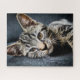 Aproveite montar esta quebra-cabeça de uma bela cinza listrada por gatinho com lindos olhos castanhos.