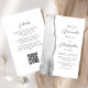 A borda esquerda deste elegante convite de casamento moderno apresenta uma cinza e uma aquarela branca, aparada com falso brilho prateado. O texto personalizável combina o script de cinza de carvão e as fontes sans serif em um fundo branco. O verso fornece espaço para detalhes do casamento em um fundo branco sólido, junto com um código QR que os convidados podem digitalizar para visitar seu site e RSVP, o que economiza o custo de imprimir e enviar cartões RSVP separados.