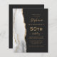 A borda esquerda deste elegante e moderno convite de aniversário 50º apresenta uma cinza e uma aquarela branca, borda agitada com brilho dourado. O texto personalizável combina manuscrito dourado, fontes em copperplate e itálico em um fundo preto de slate. Adicione instruções RSVP na parte traseira da placa, juntamente com um código QR que os convidados podem verificar para responder on-line.